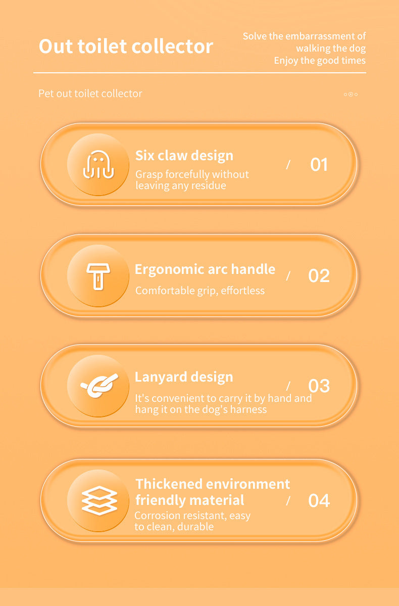 Keep your walks, backyard, and travel adventures clean with our innovative Pet Toilet Collector. This cleverly designed pooper scooper is an essential tool for responsible dog owners, offering a convenient, no-touch solution for pet waste pickup. Its lightweight and durable ABS construction makes it easy to carry and use wherever you and your furry friend roam.